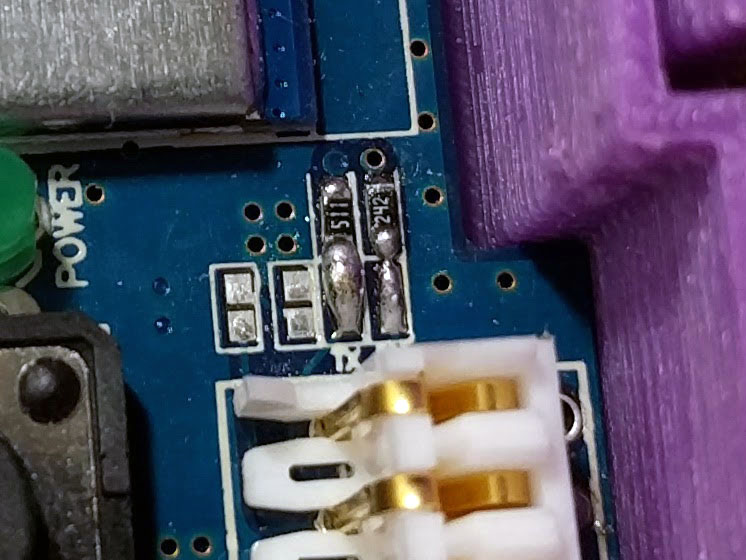 Solder bridges and resistors as illustrated in the picture below.