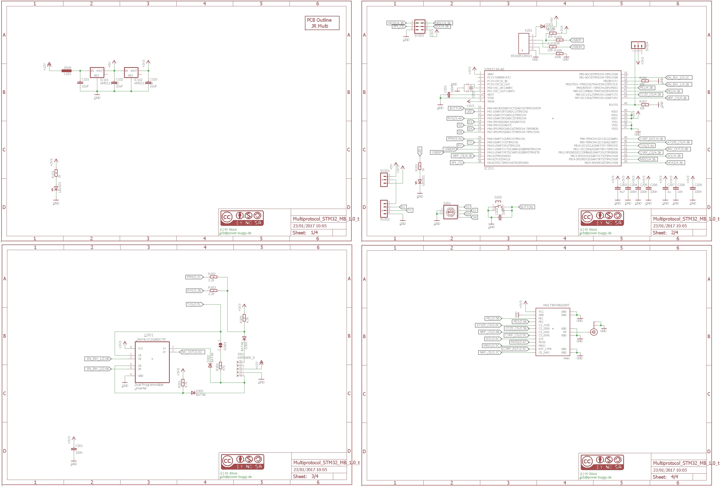 - The latest STM32 (32-bit) powered PCB V1.0t supporting the 4-in-1 RF module available from OSHPark here.