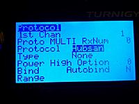 - selecting the specific radio protocol (e.g. DSM) and the sub protocol (e.g. DSMX22) is done directly in the menu system of the Tx (see the picture below)